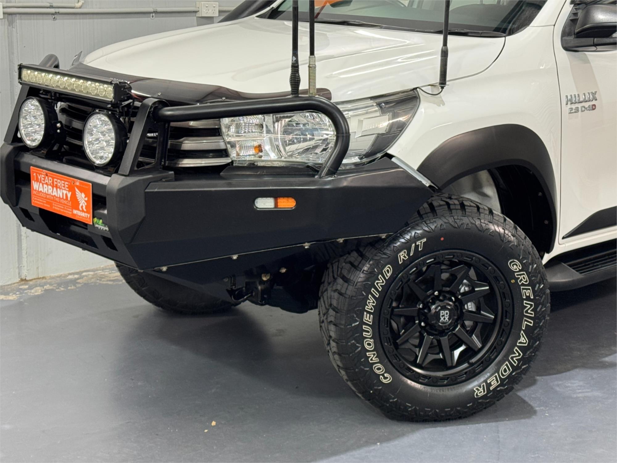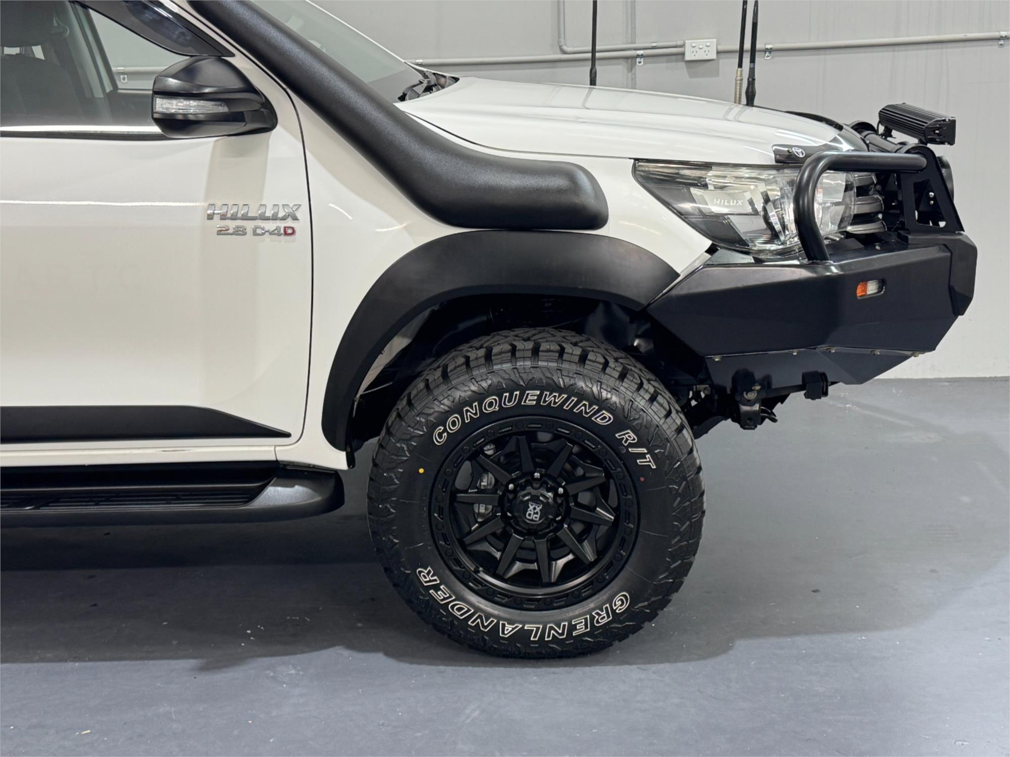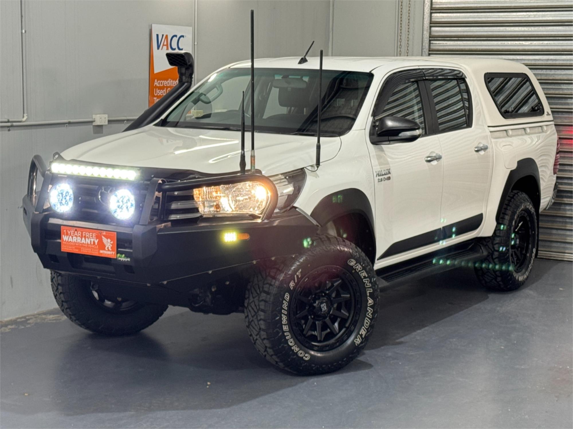 LOW KMS Toyota Hilux SR Turbo Diesel 2.8DT 4X4 Manual Dual Cab Utility With Good Service History, Current RWC, Ironman Bull Bar, Kings LED Spotlights, Titan LED Light Bar, Lift Fit, 17" Satin Black/Silver PDXX Off Roads Alloys Wheels With Four Brand New Rugged / All Terrain Tyres, Snorkel, Colour Coded Crown Lockable Canopy, Side Steps, Tow Bar, UHF Radio, Reversing Camera With Parking Guide, Bluetooth, USB Socket, AUX Input, 12V Auxiliary Socket, Daytime Running Lamps, Traction Control, Multi-Functions Steering Wheel, Black Fender Flares, Bonnet Protector, Weather Shield, Rubber Floor Mats, Cruise Control, Original Premium Sound System, Airbags, Power Windows, ABS Brakes, Immaculate Condition and Clear Title with Thousands Worth Of Gears. Great workhorse or family car kept in beautiful condition and beautifully presented. This is a very special loved vehicle that has been meticulously maintained.