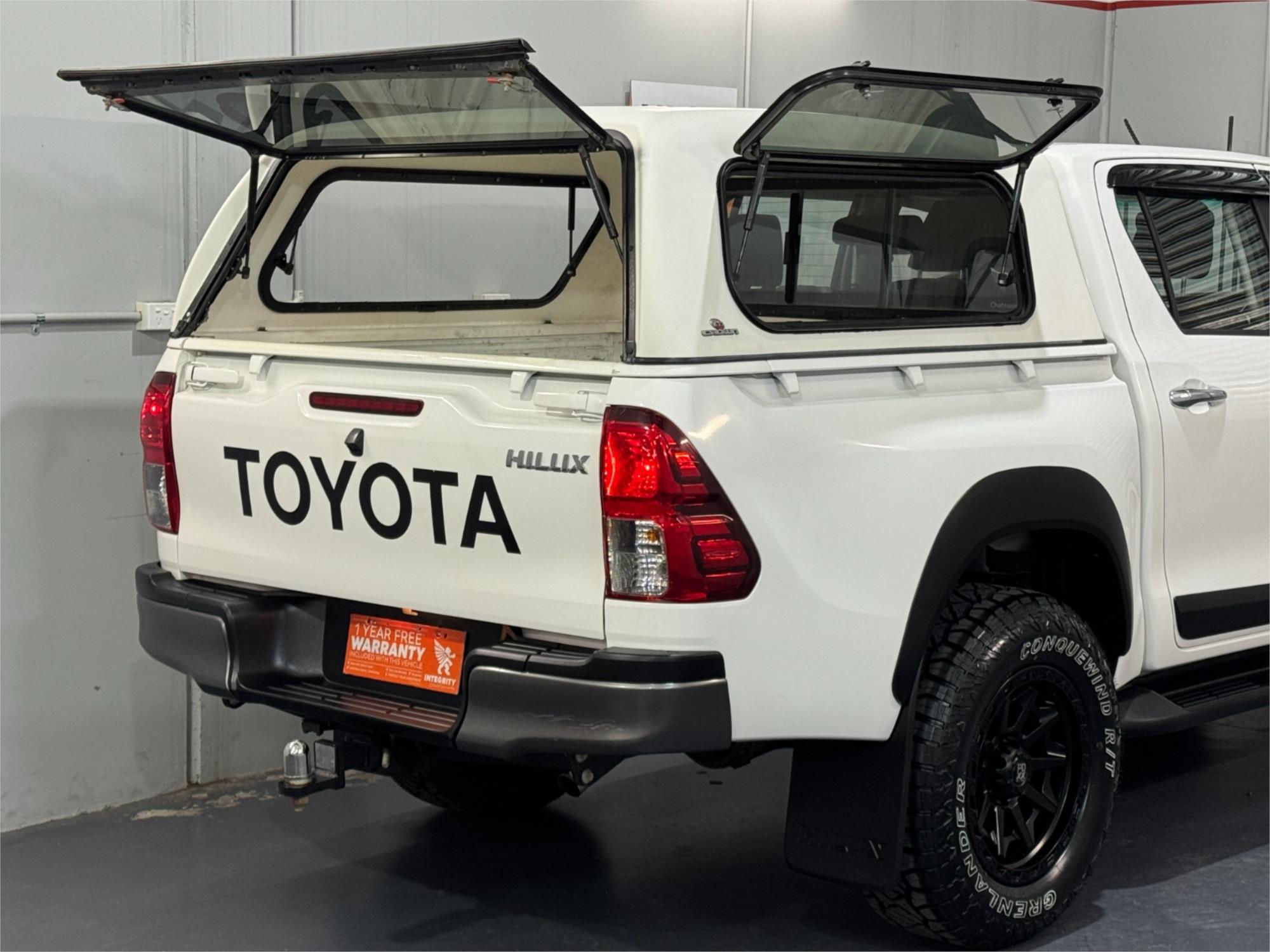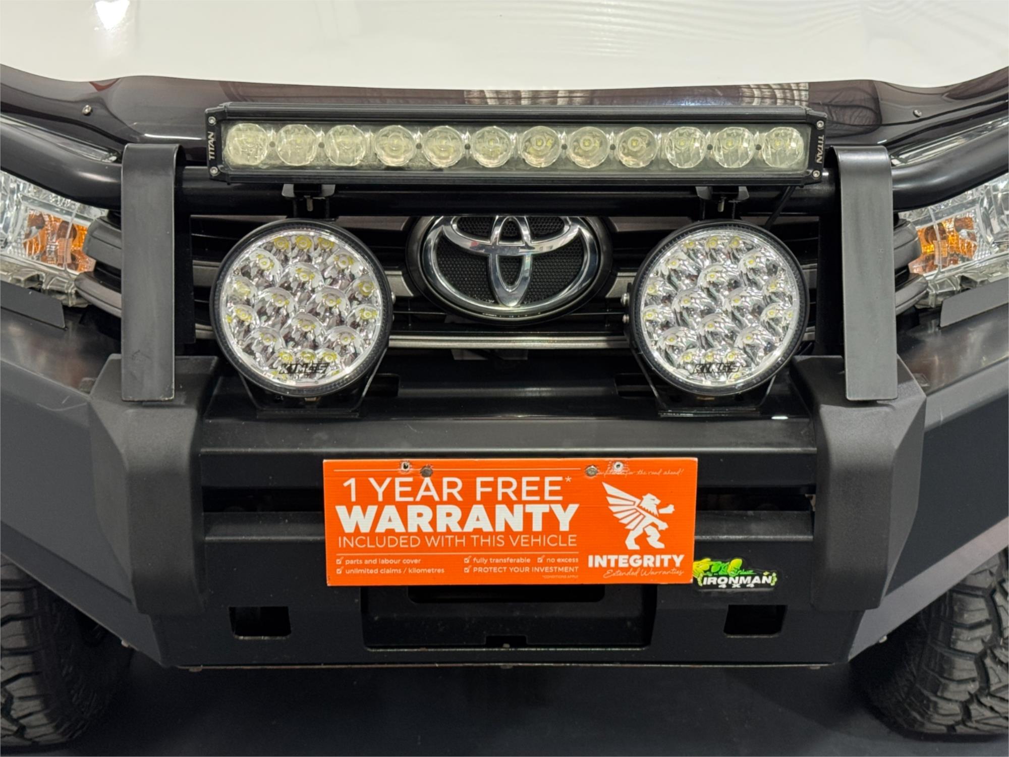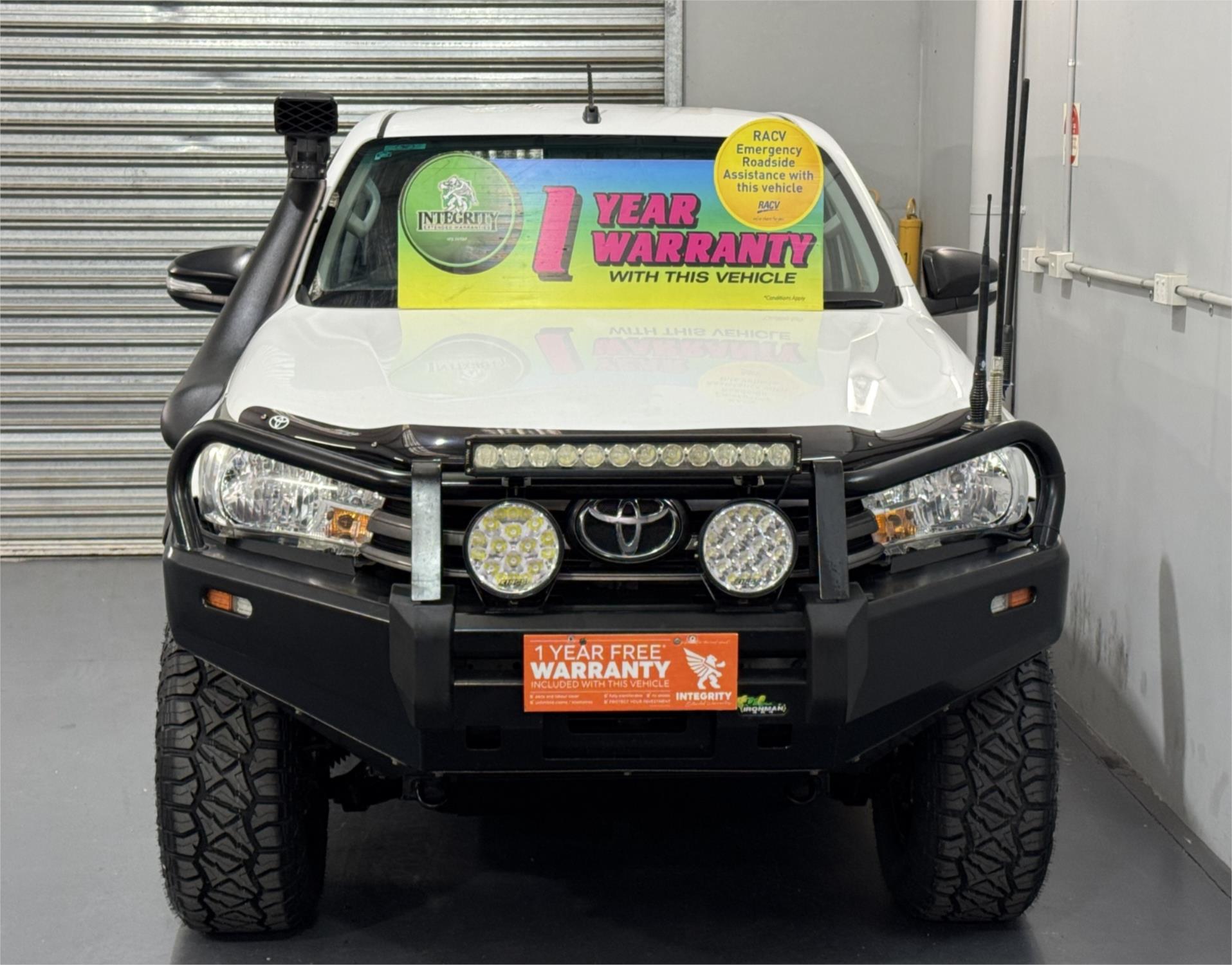 LOW KMS Toyota Hilux SR Turbo Diesel 2.8DT 4X4 Manual Dual Cab Utility With Good Service History, Current RWC, Ironman Bull Bar, Kings LED Spotlights, Titan LED Light Bar, Lift Fit, 17" Satin Black/Silver PDXX Off Roads Alloys Wheels With Four Brand New Rugged / All Terrain Tyres, Snorkel, Colour Coded Crown Lockable Canopy, Side Steps, Tow Bar, UHF Radio, Reversing Camera With Parking Guide, Bluetooth, USB Socket, AUX Input, 12V Auxiliary Socket, Daytime Running Lamps, Traction Control, Multi-Functions Steering Wheel, Black Fender Flares, Bonnet Protector, Weather Shield, Rubber Floor Mats, Cruise Control, Original Premium Sound System, Airbags, Power Windows, ABS Brakes, Immaculate Condition and Clear Title with Thousands Worth Of Gears. Great workhorse or family car kept in beautiful condition and beautifully presented. This is a very special loved vehicle that has been meticulously maintained.
