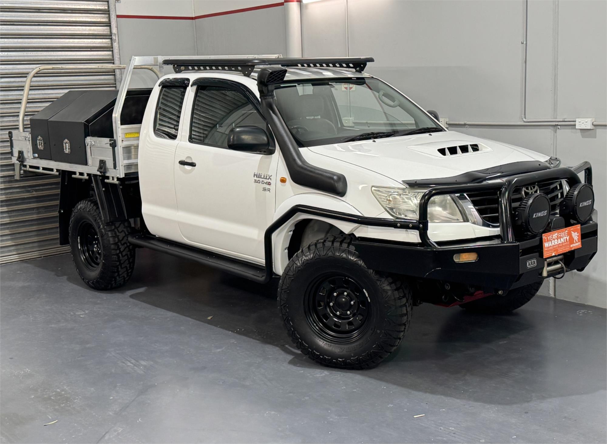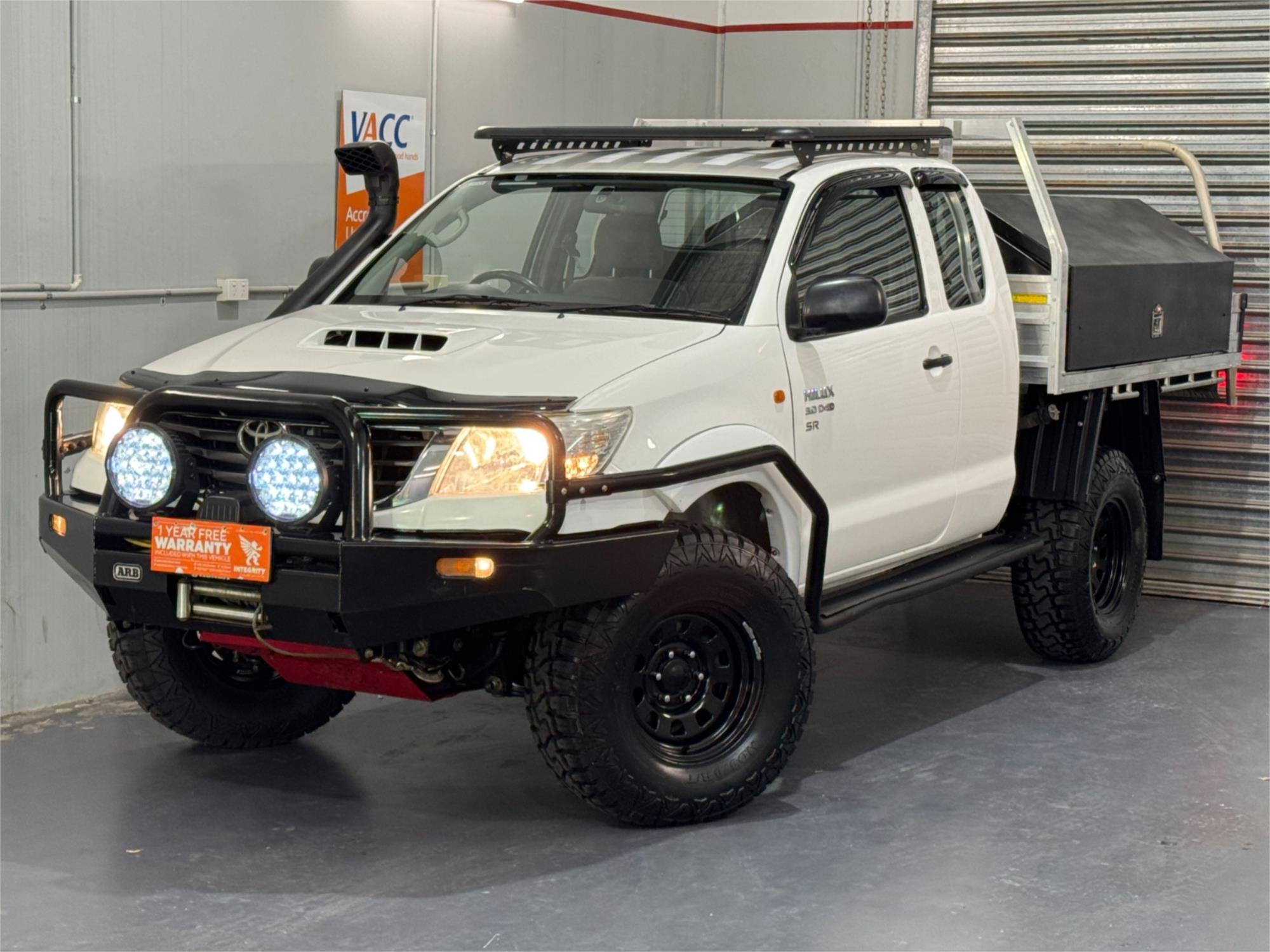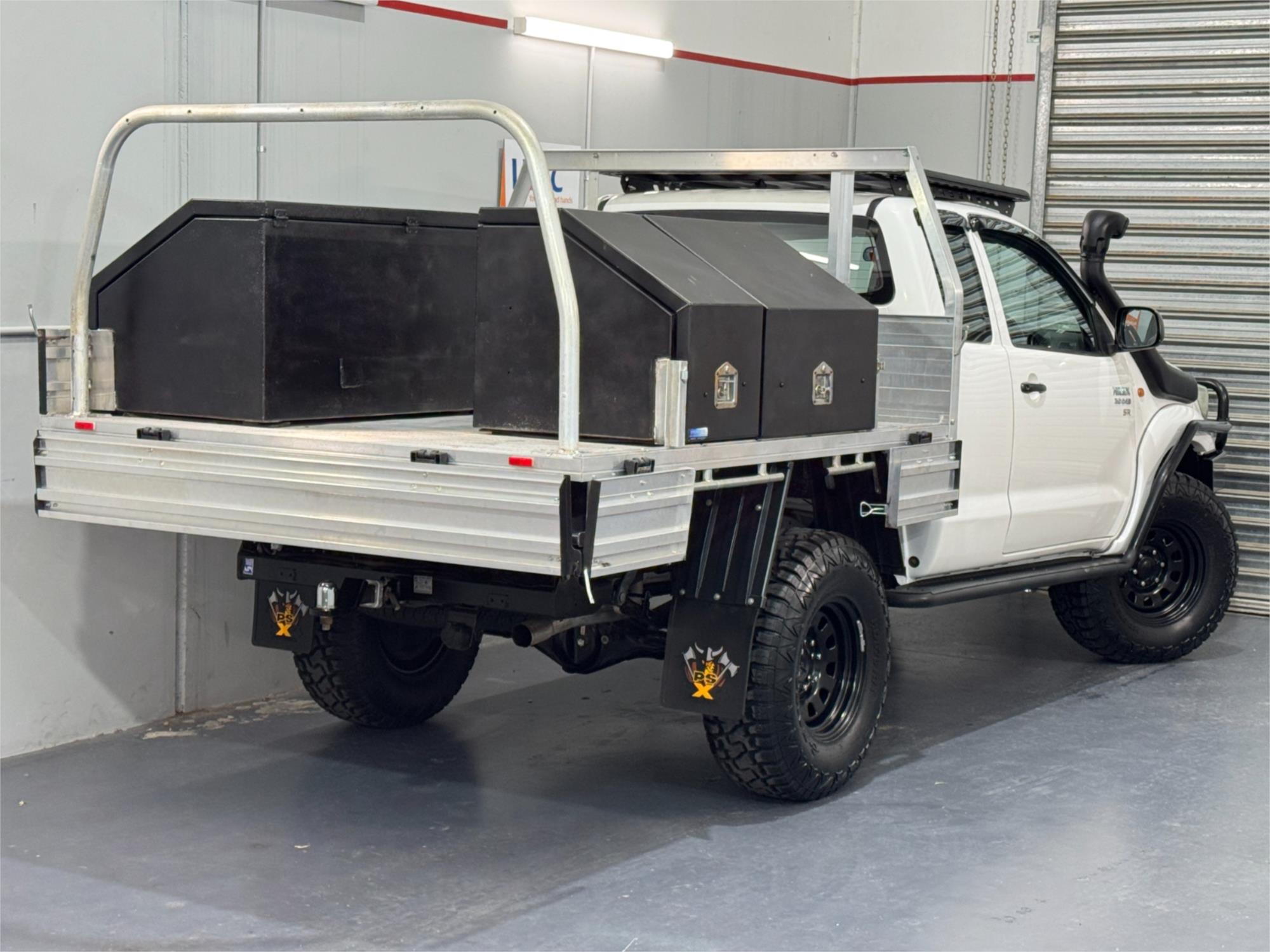 MY12 Hilux SR Turbo Diesel 3.0DT 4X4 Manual Cab Chassis Extended Cab 4 Seats, Current RWC, Heavy Duty Tray With Large Tool Boxes and Drawers, ARB Bull Bar, Heavy Duty Winch, Kings Spot Lights, Snorkel, 16" Sunraysia Wheels With Brand New four Mud Tyres, Lift Kit, Dual Battery System, ARB Steel Side Steps & Brush Bars, Red Bash Plates, Steel Roof Racks, Tow Bar, AUX Input, USB Socket, Bluetooth, Bonnet Protector, Weather Shield, Airbags, Power Windows, ABS Brakes, Electric Mirrors, Multi-Function Steering Wheel, Central Locking - Remote Keyless, Clear Title and Immaculate Condition with Thousands Worth Of Gears. Great workhorse or family car kept in beautiful condition and beautifully presented. This is a very special loved vehicle that has been meticulously maintained.