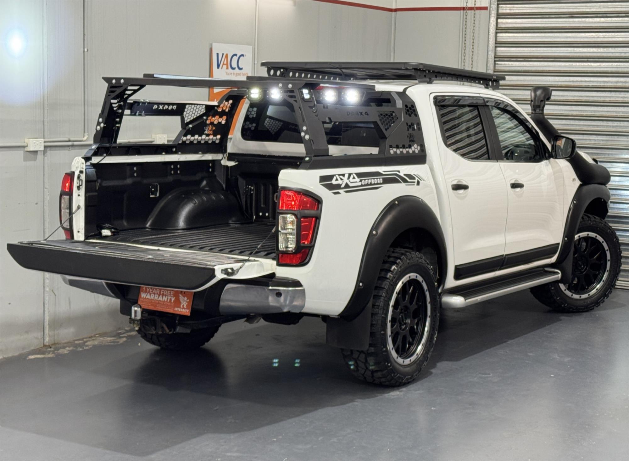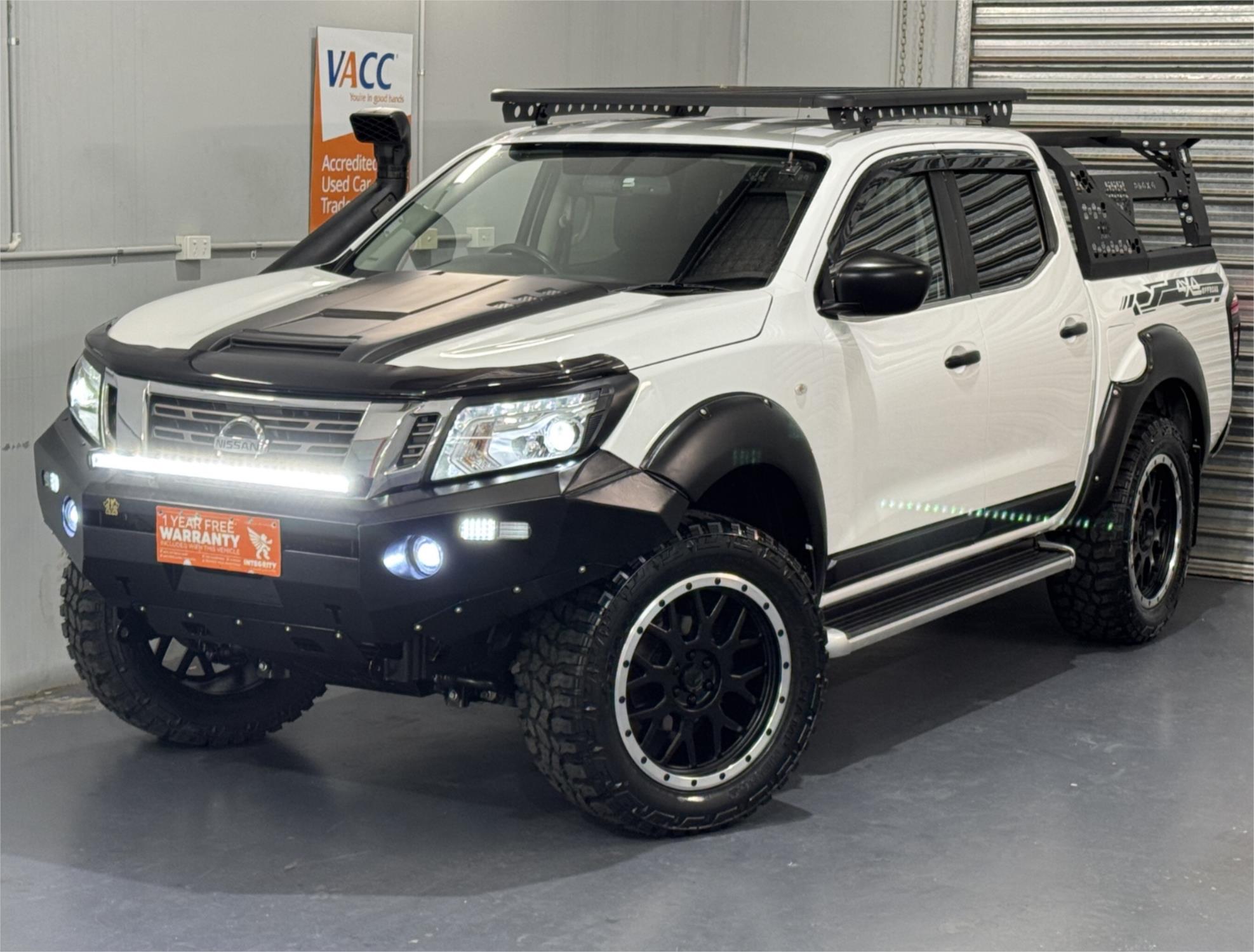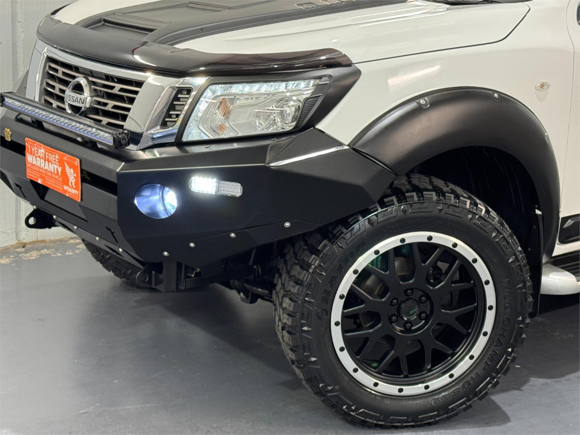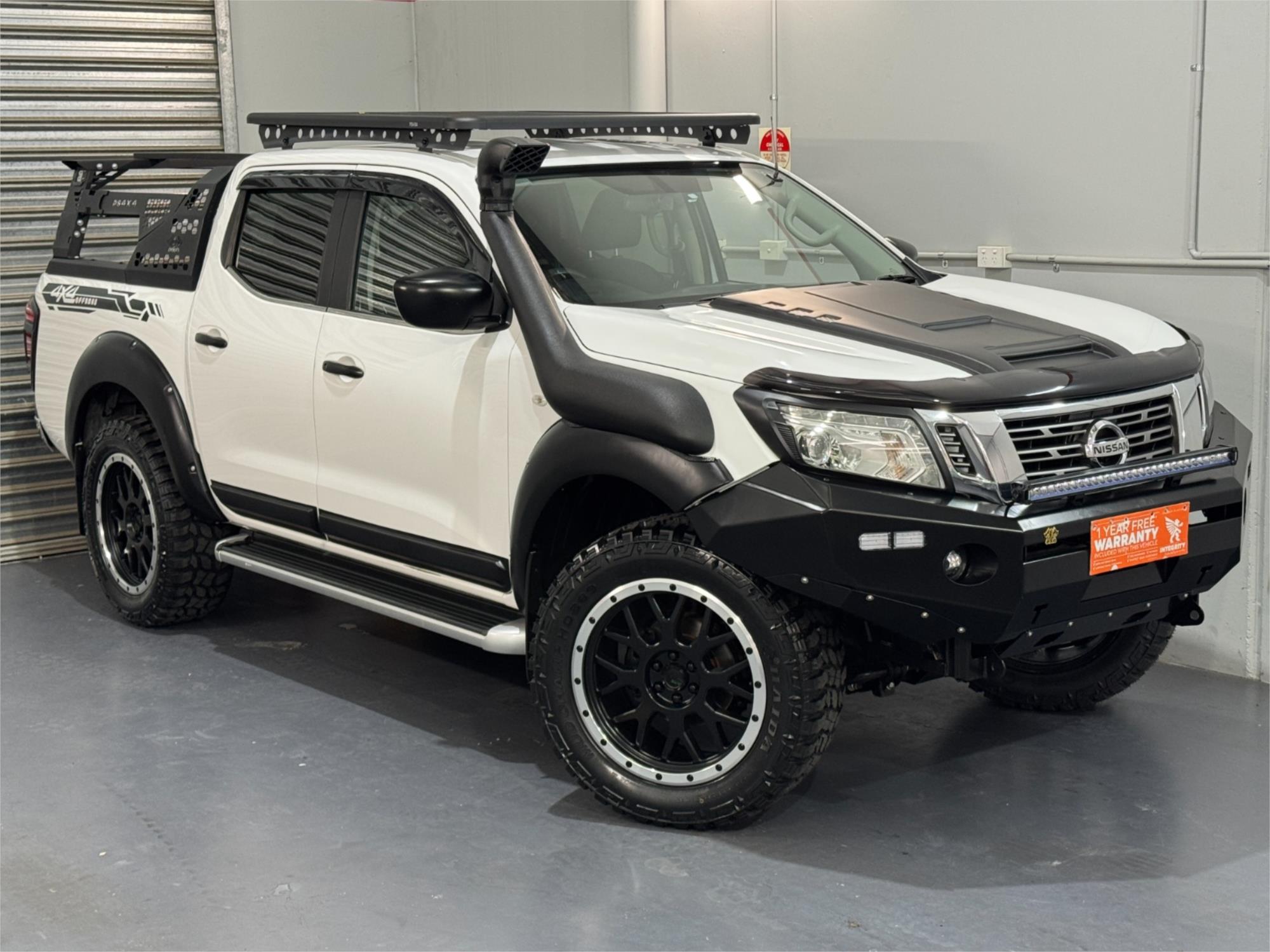 White 2017 Nissan Navara D23 S2 SL Dual Cab Utility Turbo Diesel 2.3DT 4X4 Auto With Current RWC, Good Service History, Black Steel Bull Bar With LED Fog Lights, 30" Kings LED Light Bar, 20" Satin Black PDW Alloy Wheels With Four Brand New Haida Mud Champ HD869, Lift Kit, Snorkel, Open Roof Racks, Black Tub Rack With Flush Mount and Six Square LED Lights, Full Tub Liner, Side Steps, Rear Steps, Black Flares, Black Bonnet Scoop, Reversing Camera, Tow Bar, Cruise Control, Aux Input Socket, USB Socket, Bluetooth System, Bonnet Protector, Weather Shield, Airbags, Power Windows, ABS Brakes, Multi-Function Steering Wheel, Central Locking-Remote Keyless, Immaculate Condition and Clear Title with Thousands Worth Of Gears. Great workhorse or family car kept in beautiful condition and beautifully presented. This is a very special loved vehicle that has been meticulously maintained.
