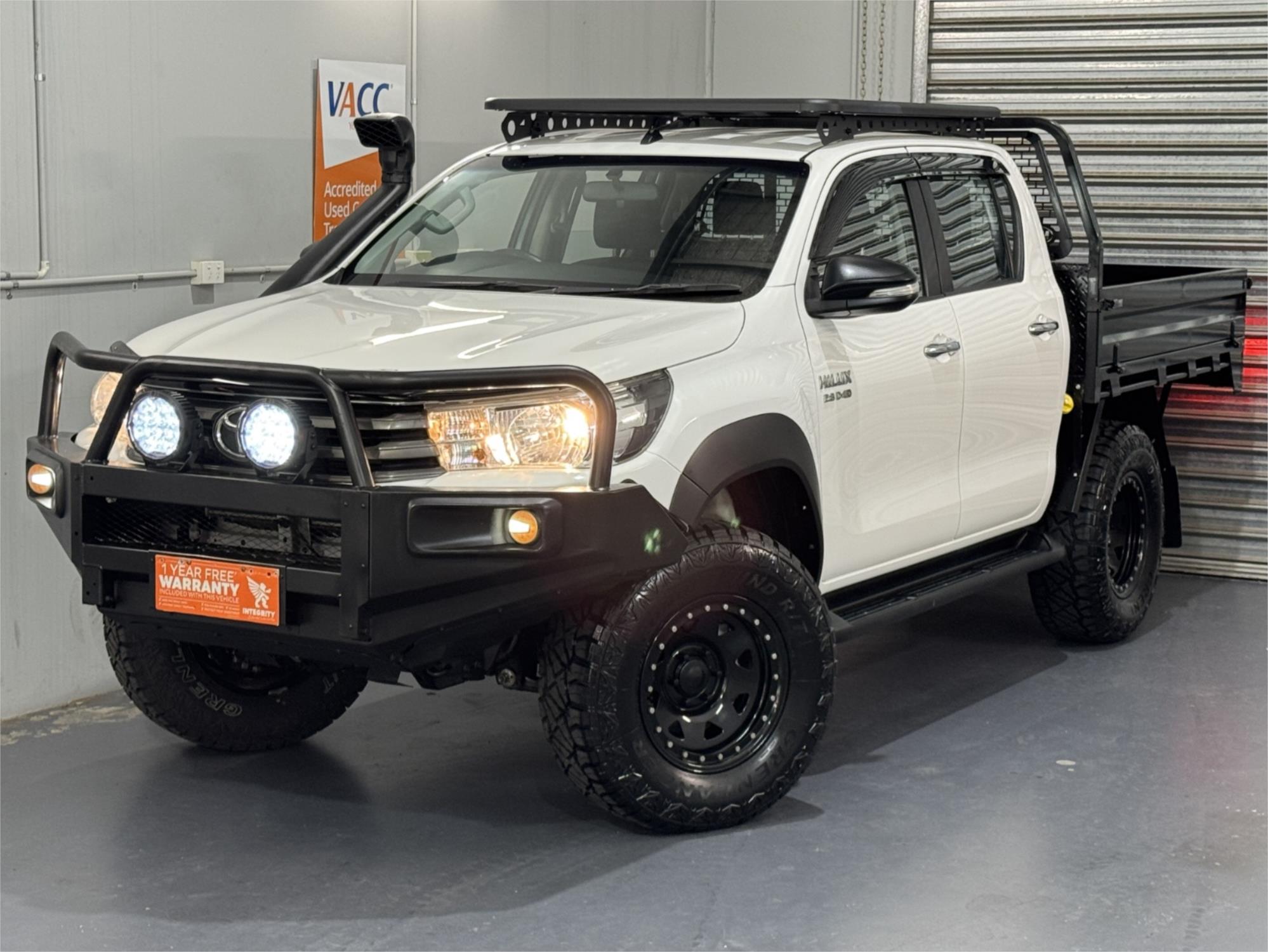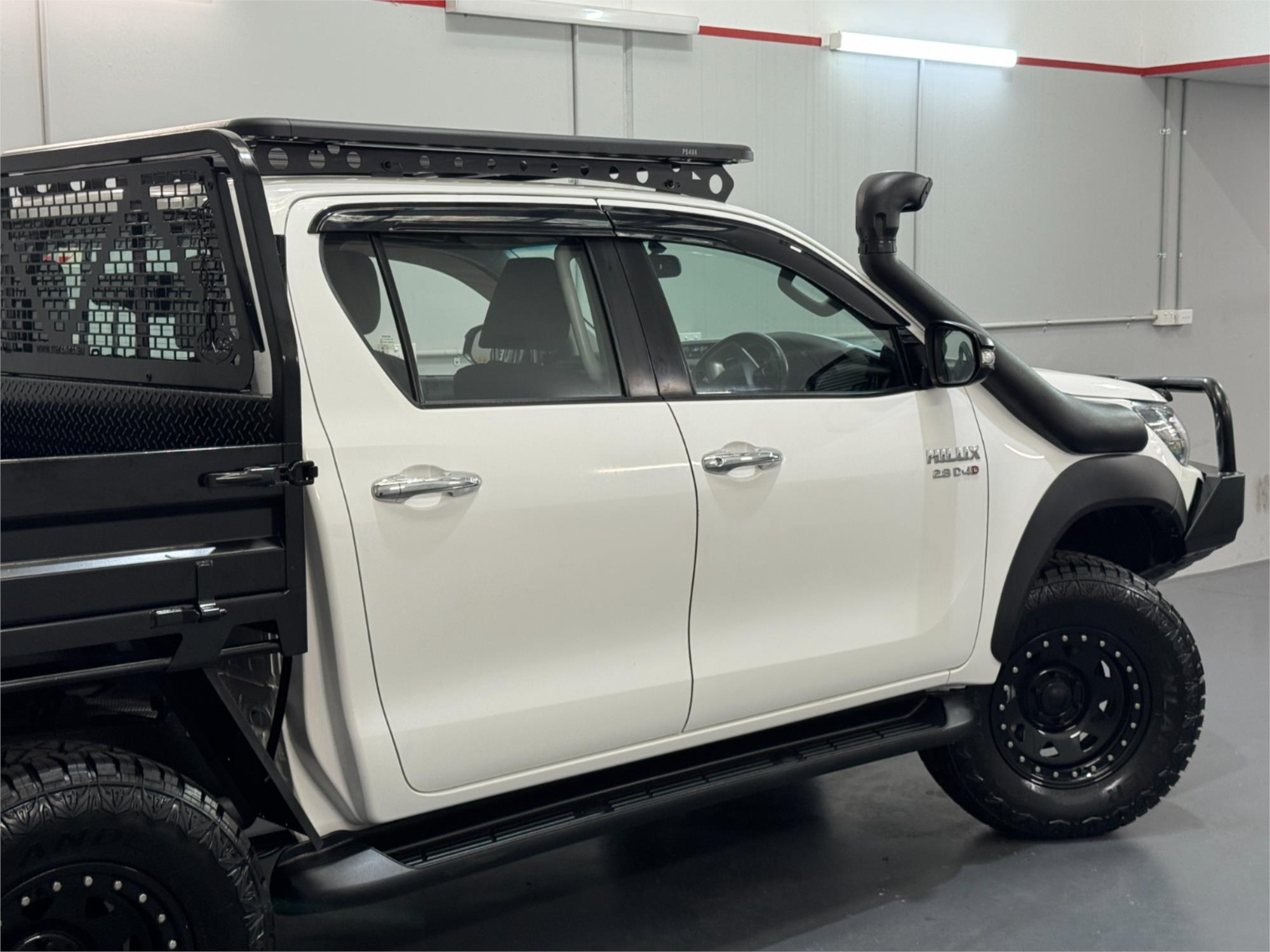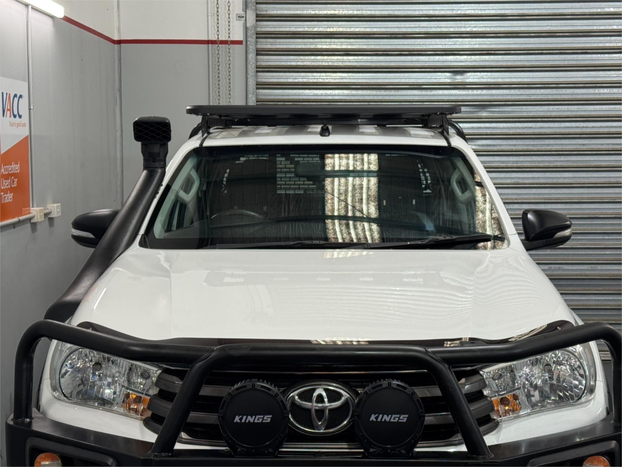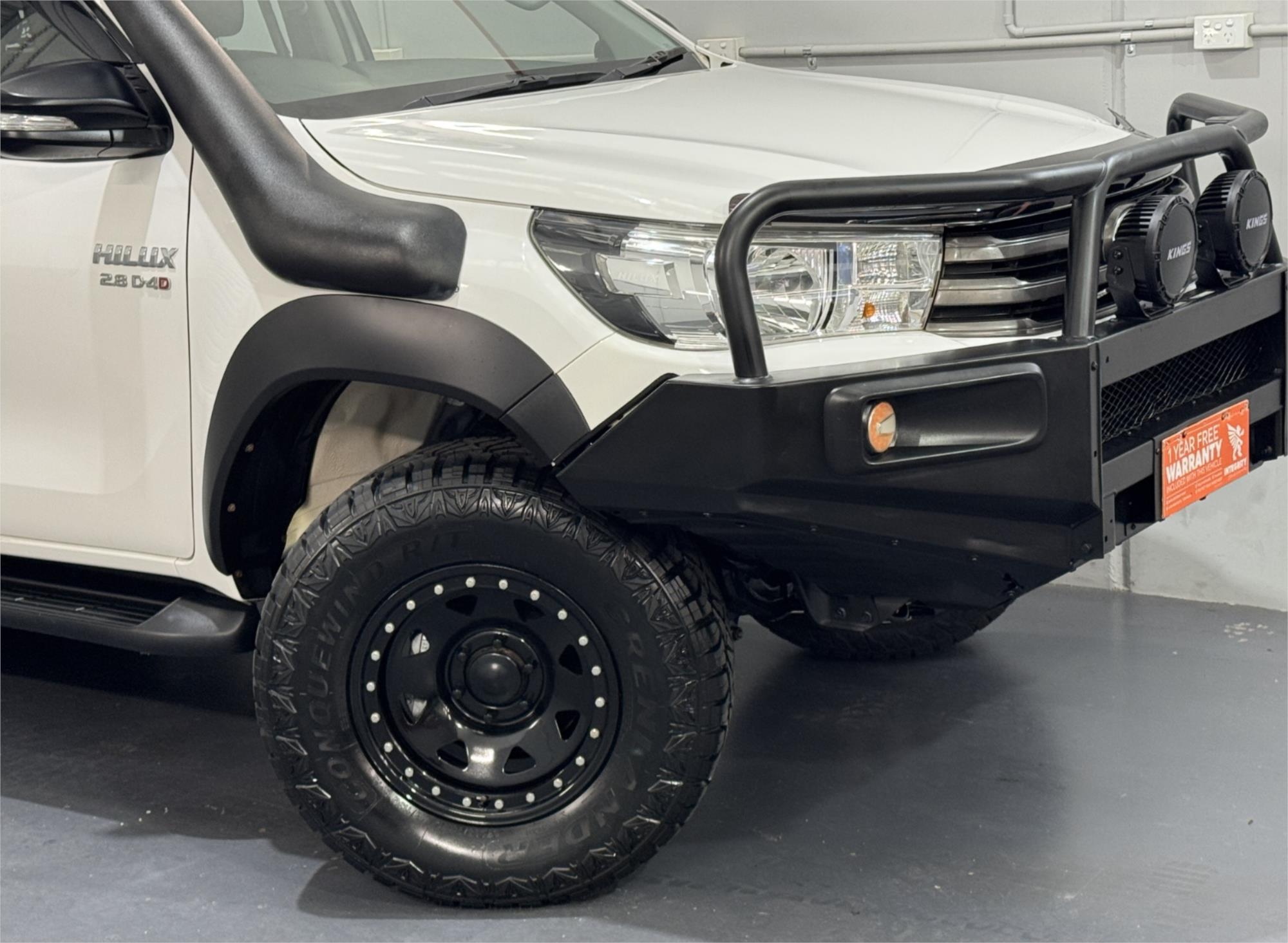 LOW KMS Toyota Hilux SR Turbo Diesel 2.8DT 4X4 Manual Cab Chassis Dual Cab Utility With Current RWC, Black Steel Bull Bar, Kings LED Spotlights, Lift Fit, 17" Satin Black Dynamic Steel Simulated Beadlock Sunraysia Wheels With Near New Brand New Rugged / All Terrain Tyres, Snorkel, Heavy Duty Steel Black Tray, Open Roof Racks, Side Steps, Tow Bar, Black Front Fender Flares, Reversing Camera With Parking Guide, Bluetooth, USB Socket, AUX Input, 12V Auxiliary Socket, Daytime Running Lamps, Traction Control, Multi-Functions Steering Wheel, Bonnet Protector, Weather Shield, Rubber Floor Mats, Cruise Control, Original Premium Sound System, Airbags, Power Windows, ABS Brakes, Immaculate Condition and Clear Title with Thousands Worth Of Gears. Great workhorse or family car kept in beautiful condition and beautifully presented. This is a very special loved vehicle that has been meticulously maintained.