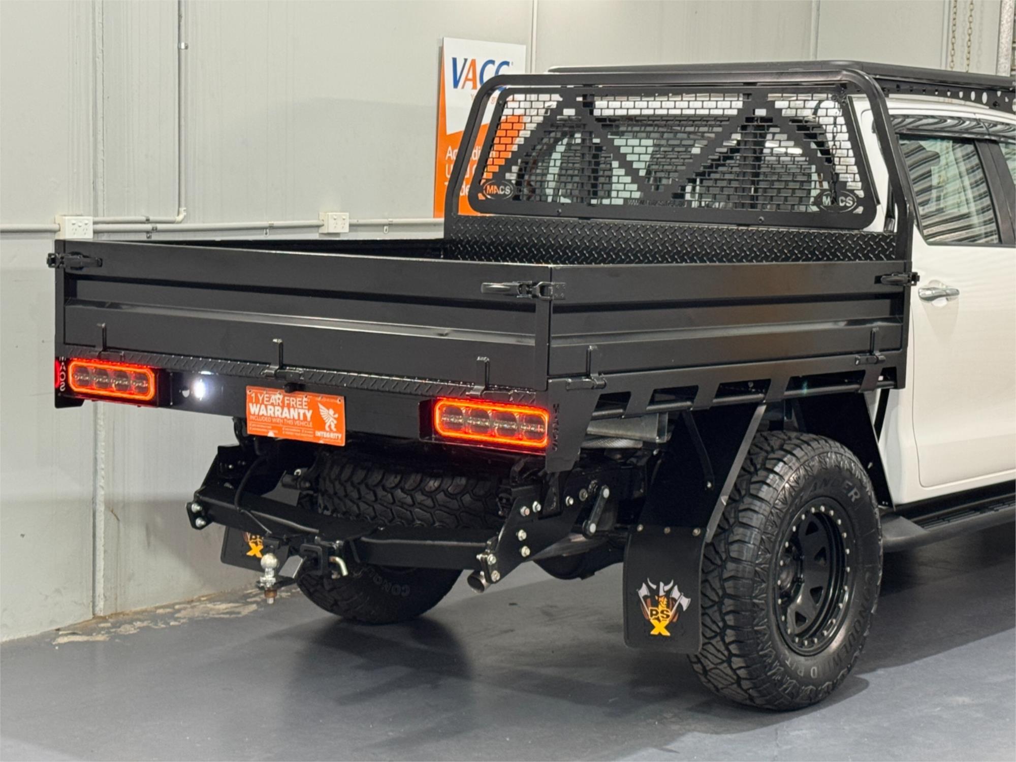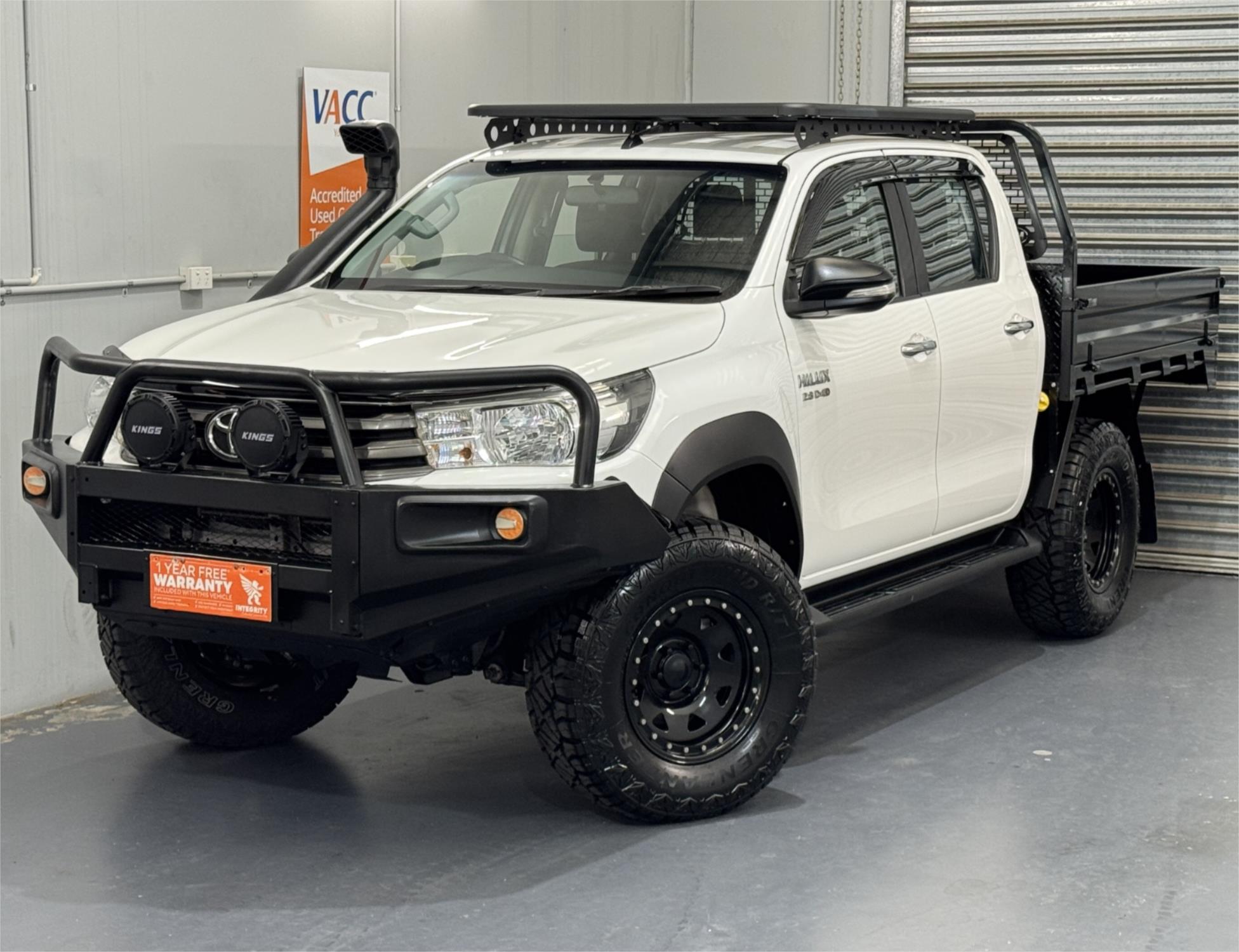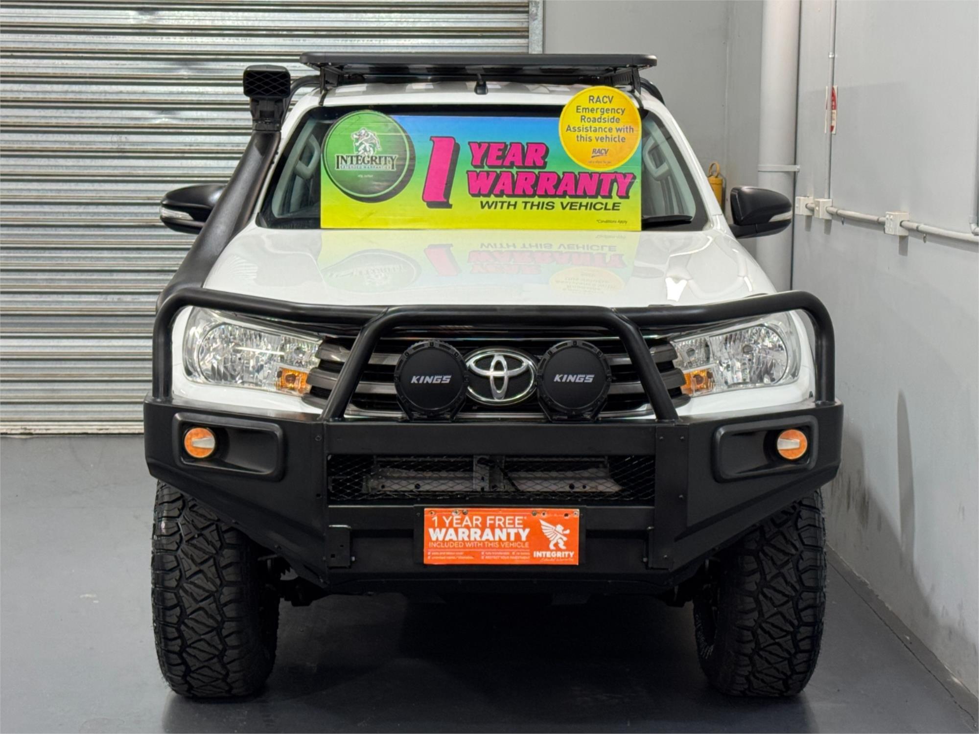 LOW KMS Toyota Hilux SR Turbo Diesel 2.8DT 4X4 Manual Cab Chassis Dual Cab Utility With Current RWC, Black Steel Bull Bar, Kings LED Spotlights, Lift Fit, 17" Satin Black Dynamic Steel Simulated Beadlock Sunraysia Wheels With Near New Brand New Rugged / All Terrain Tyres, Snorkel, Heavy Duty Steel Black Tray, Open Roof Racks, Side Steps, Tow Bar, Black Front Fender Flares, Reversing Camera With Parking Guide, Bluetooth, USB Socket, AUX Input, 12V Auxiliary Socket, Daytime Running Lamps, Traction Control, Multi-Functions Steering Wheel, Bonnet Protector, Weather Shield, Rubber Floor Mats, Cruise Control, Original Premium Sound System, Airbags, Power Windows, ABS Brakes, Immaculate Condition and Clear Title with Thousands Worth Of Gears. Great workhorse or family car kept in beautiful condition and beautifully presented. This is a very special loved vehicle that has been meticulously maintained.
