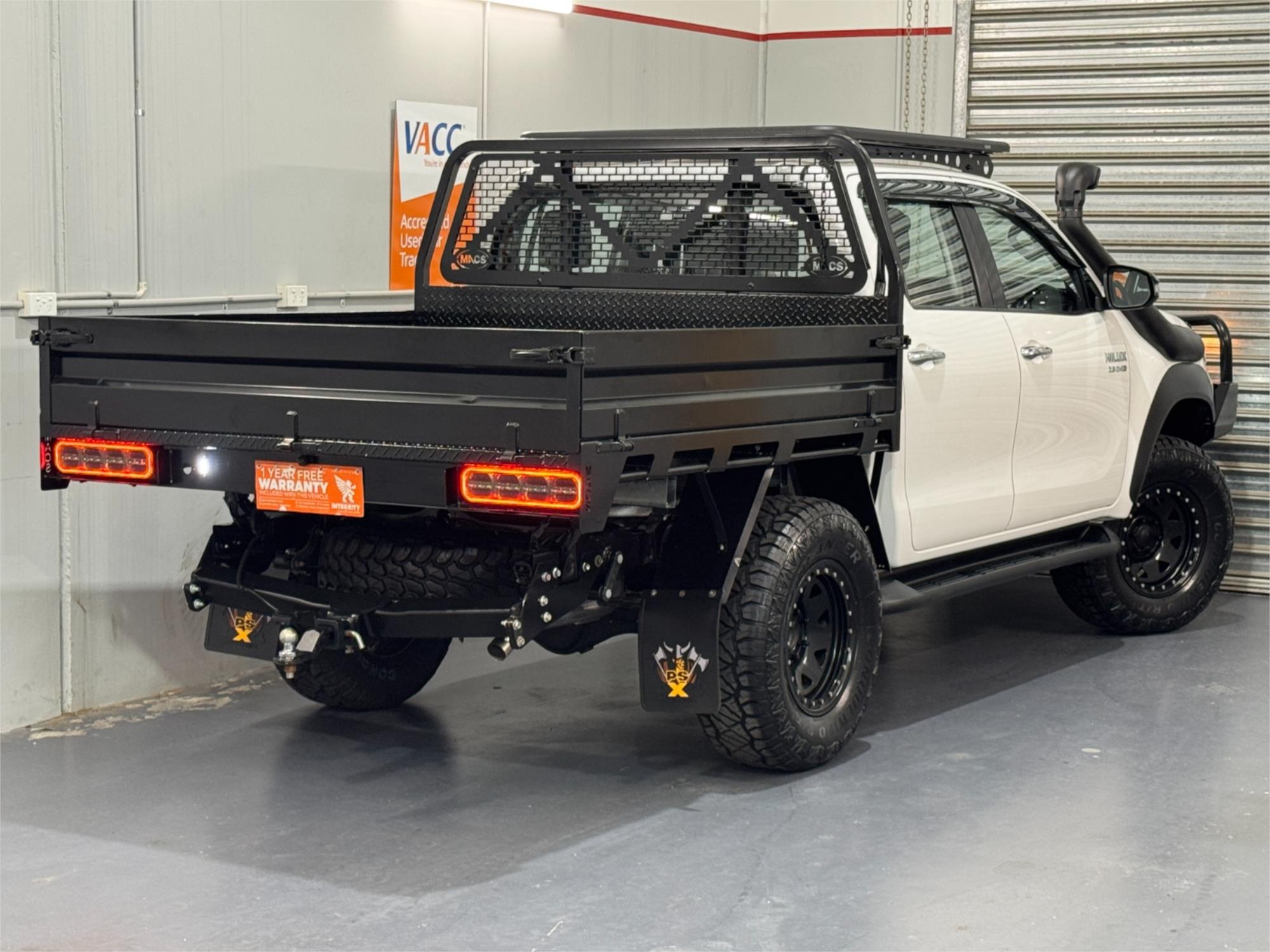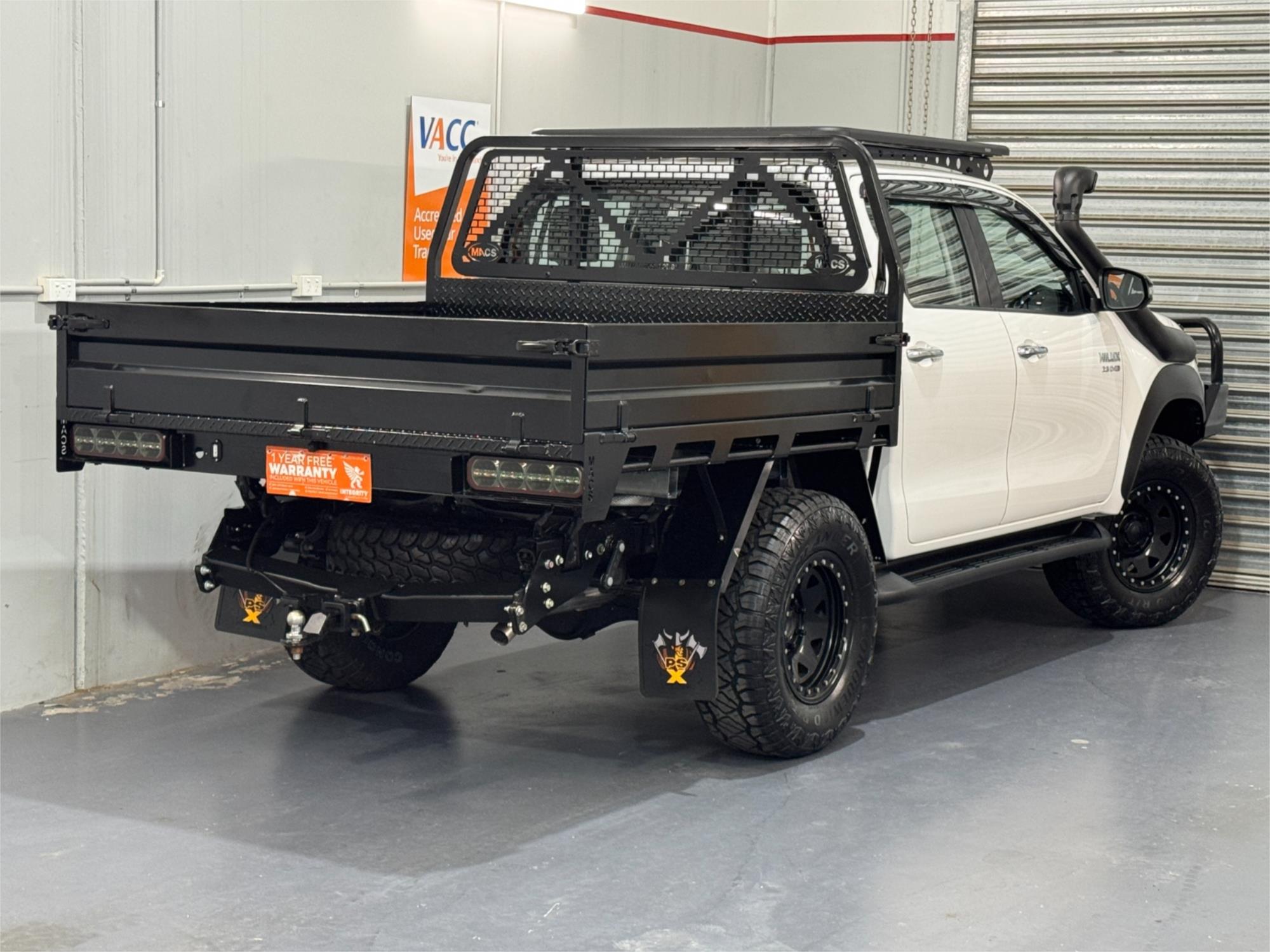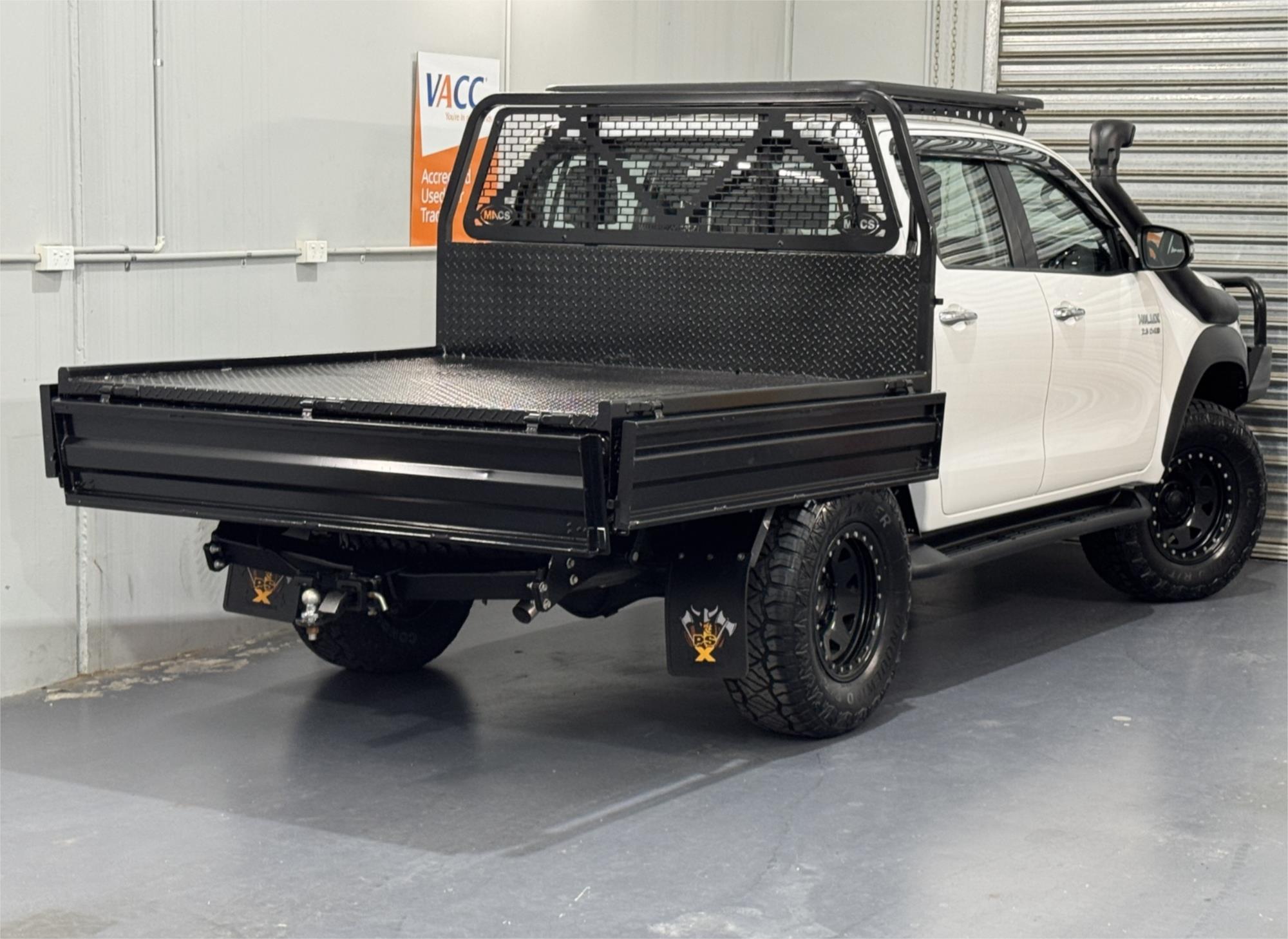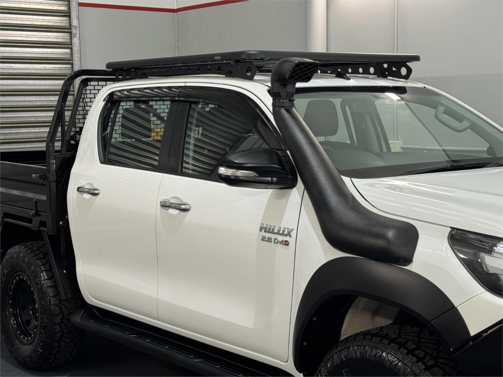 LOW KMS Toyota Hilux SR Turbo Diesel 2.8DT 4X4 Manual Cab Chassis Dual Cab Utility With Current RWC, Black Steel Bull Bar, Kings LED Spotlights, Lift Fit, 17" Satin Black Dynamic Steel Simulated Beadlock Sunraysia Wheels With Near New Brand New Rugged / All Terrain Tyres, Snorkel, Heavy Duty Steel Black Tray, Open Roof Racks, Side Steps, Tow Bar, Black Front Fender Flares, Reversing Camera With Parking Guide, Bluetooth, USB Socket, AUX Input, 12V Auxiliary Socket, Daytime Running Lamps, Traction Control, Multi-Functions Steering Wheel, Bonnet Protector, Weather Shield, Rubber Floor Mats, Cruise Control, Original Premium Sound System, Airbags, Power Windows, ABS Brakes, Immaculate Condition and Clear Title with Thousands Worth Of Gears. Great workhorse or family car kept in beautiful condition and beautifully presented. This is a very special loved vehicle that has been meticulously maintained.