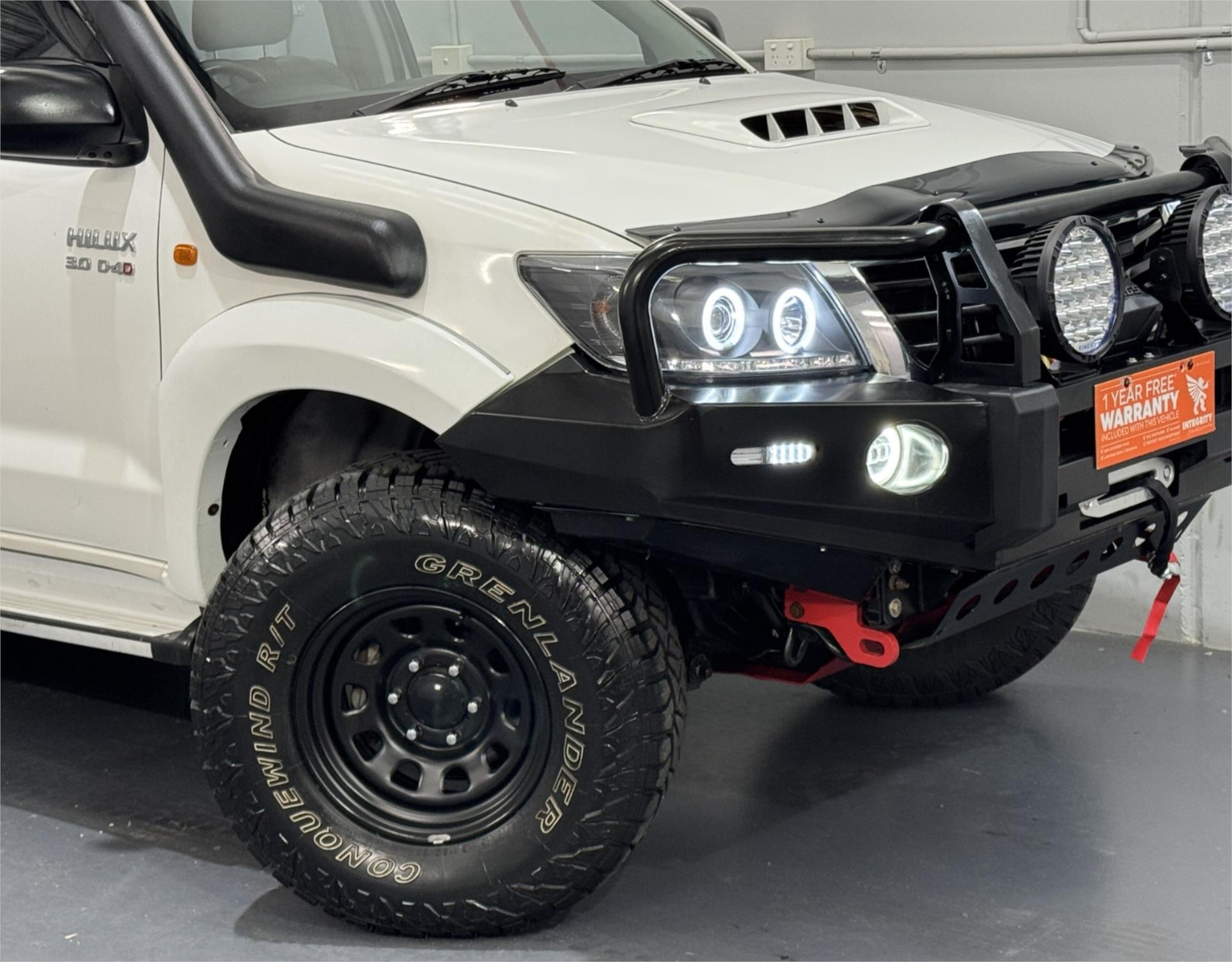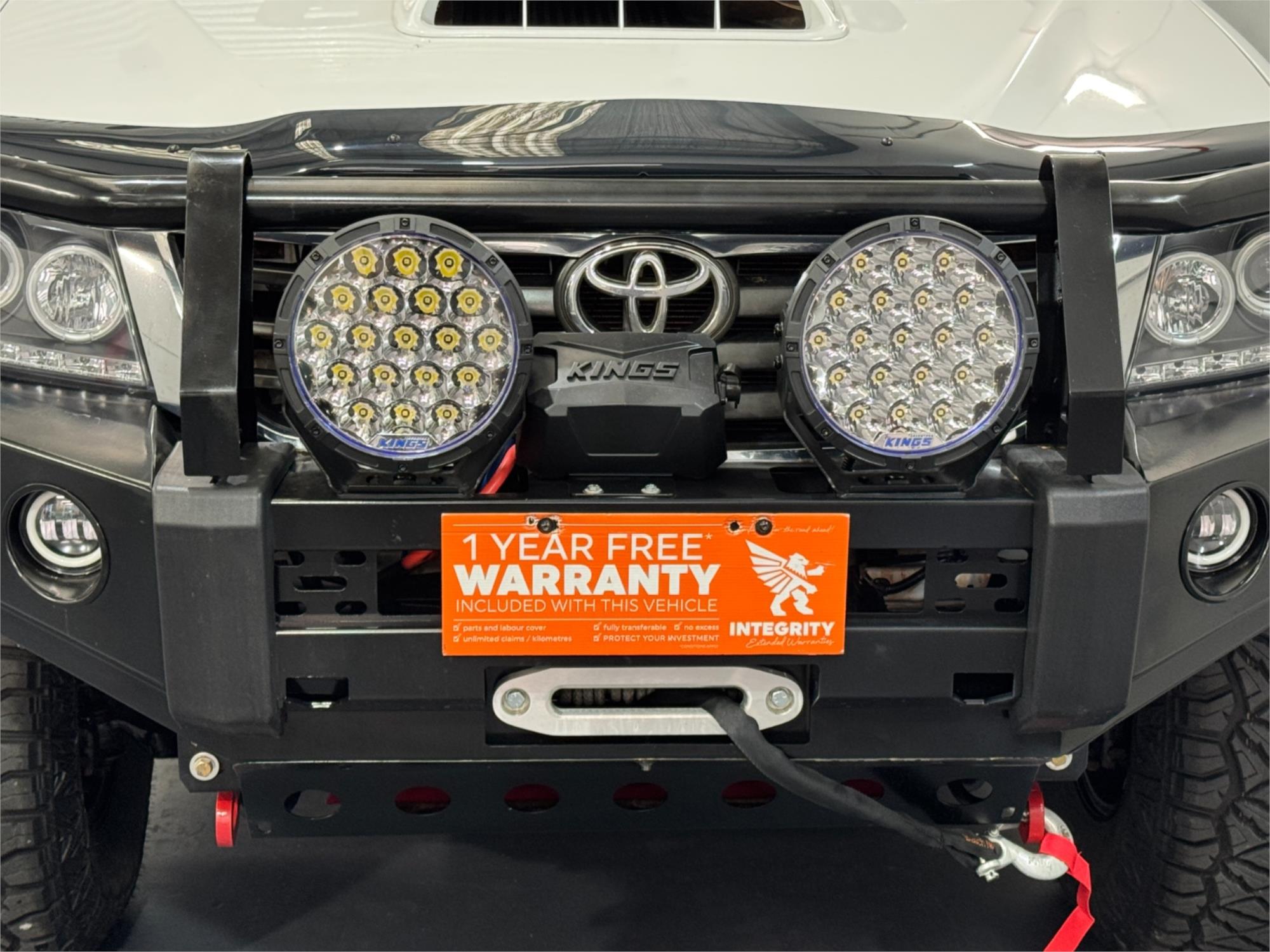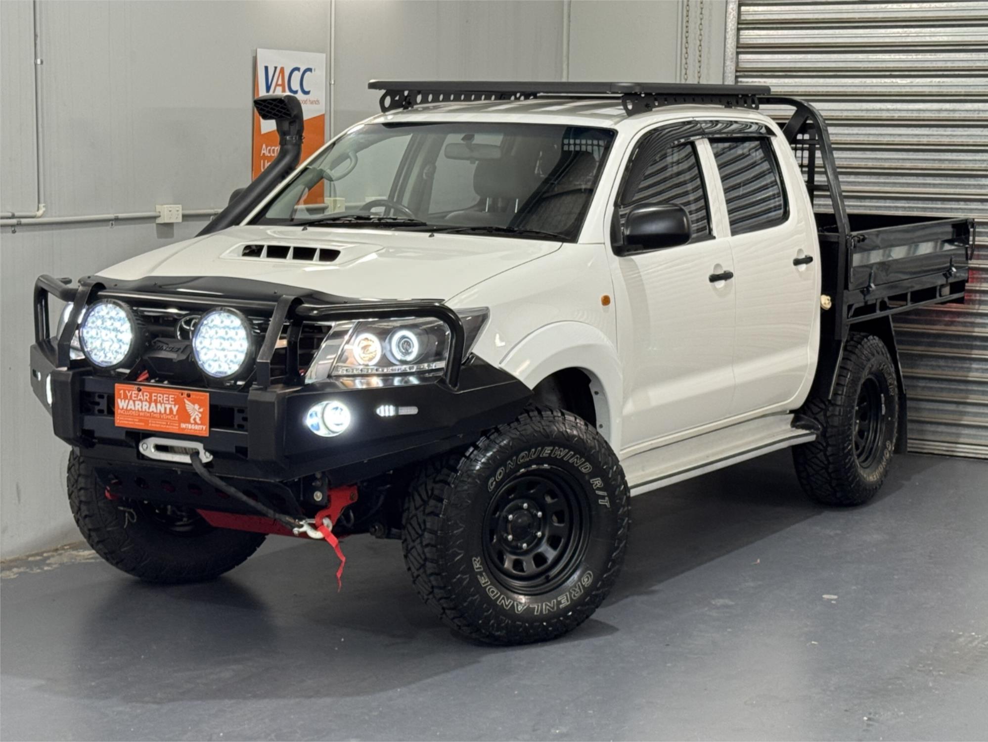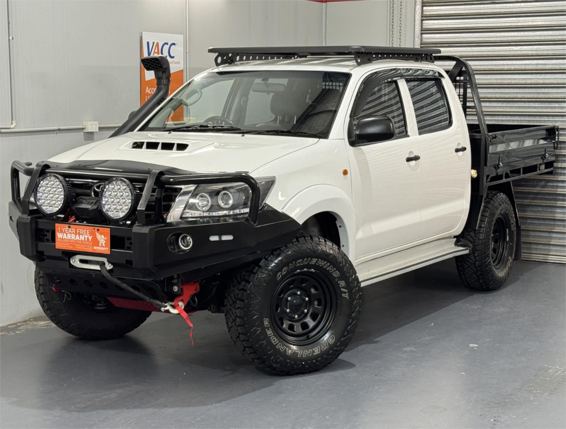 White 2012 Hilux SR Turbo Diesel 3.0DT 4X4 Automatic Cab Chassis Dual Cab Current RWC, Heavy Duty Steel Black Tray, Steel Bull Bar With Fog Lights, Kings Winch, Kings Spot Lights, Snorkel, 16" Sunraysia Wheels With Four Brand New Rugged / All Terrain Tyres, Lift Kit, Bash Plates, Open Roof Racks, Tow Bar, Original Rubber Floor Mats, AUX Input, USB Socket, Bluetooth, Bonnet Protector, Weather Shield, Airbags, Power Windows, ABS Brakes, Electric Mirrors, Multi-Function Steering Wheel, Central Locking - Remote Keyless, Clear Title and Immaculate Condition with Thousands Worth Of Gears. Great workhorse or family car kept in beautiful condition and beautifully presented. This is a very special loved vehicle that has been meticulously maintained.