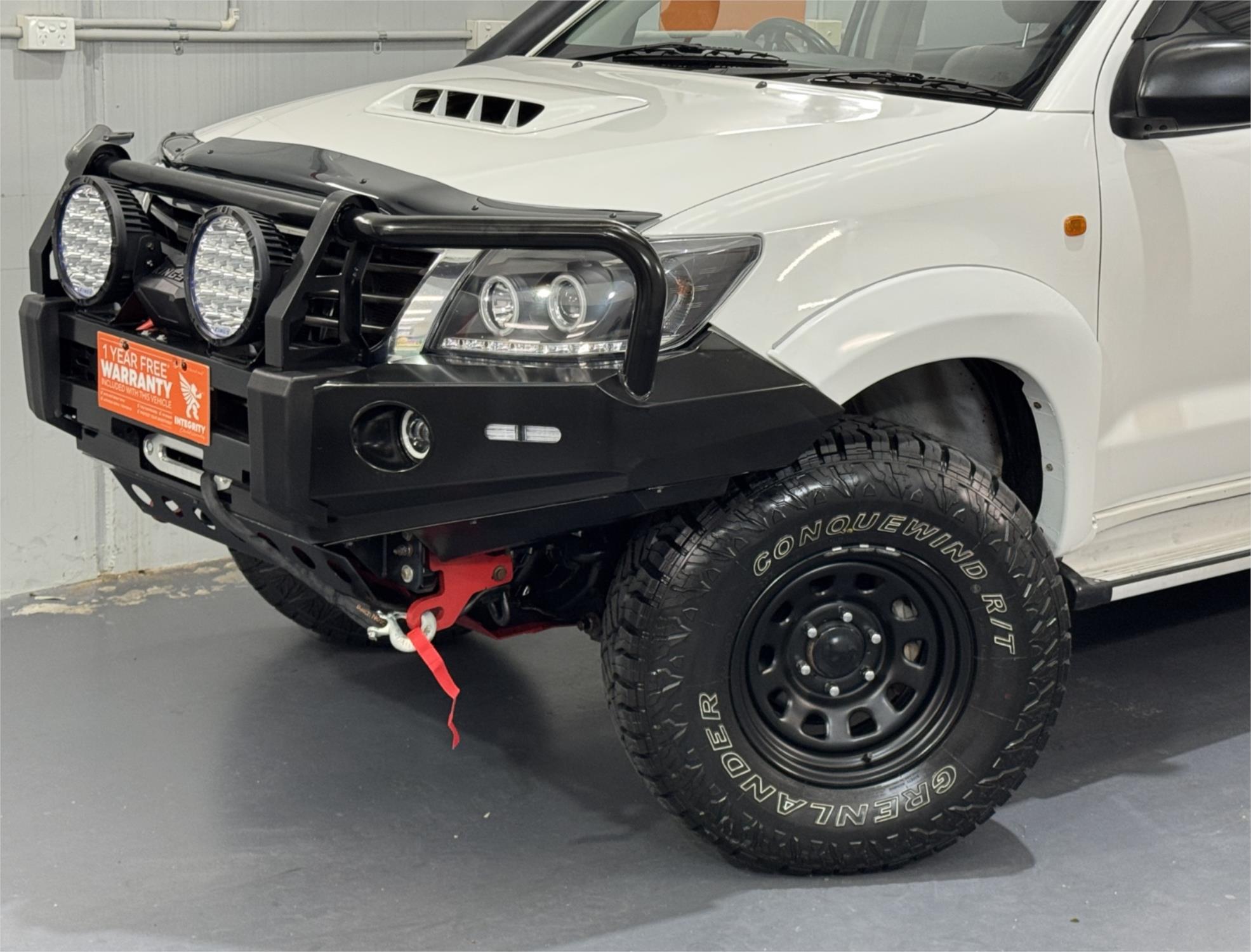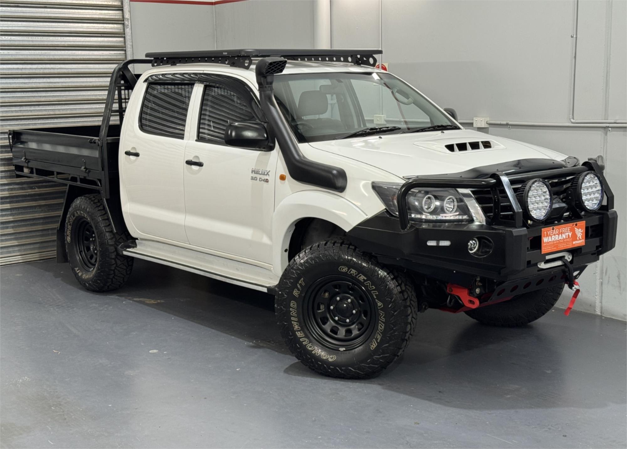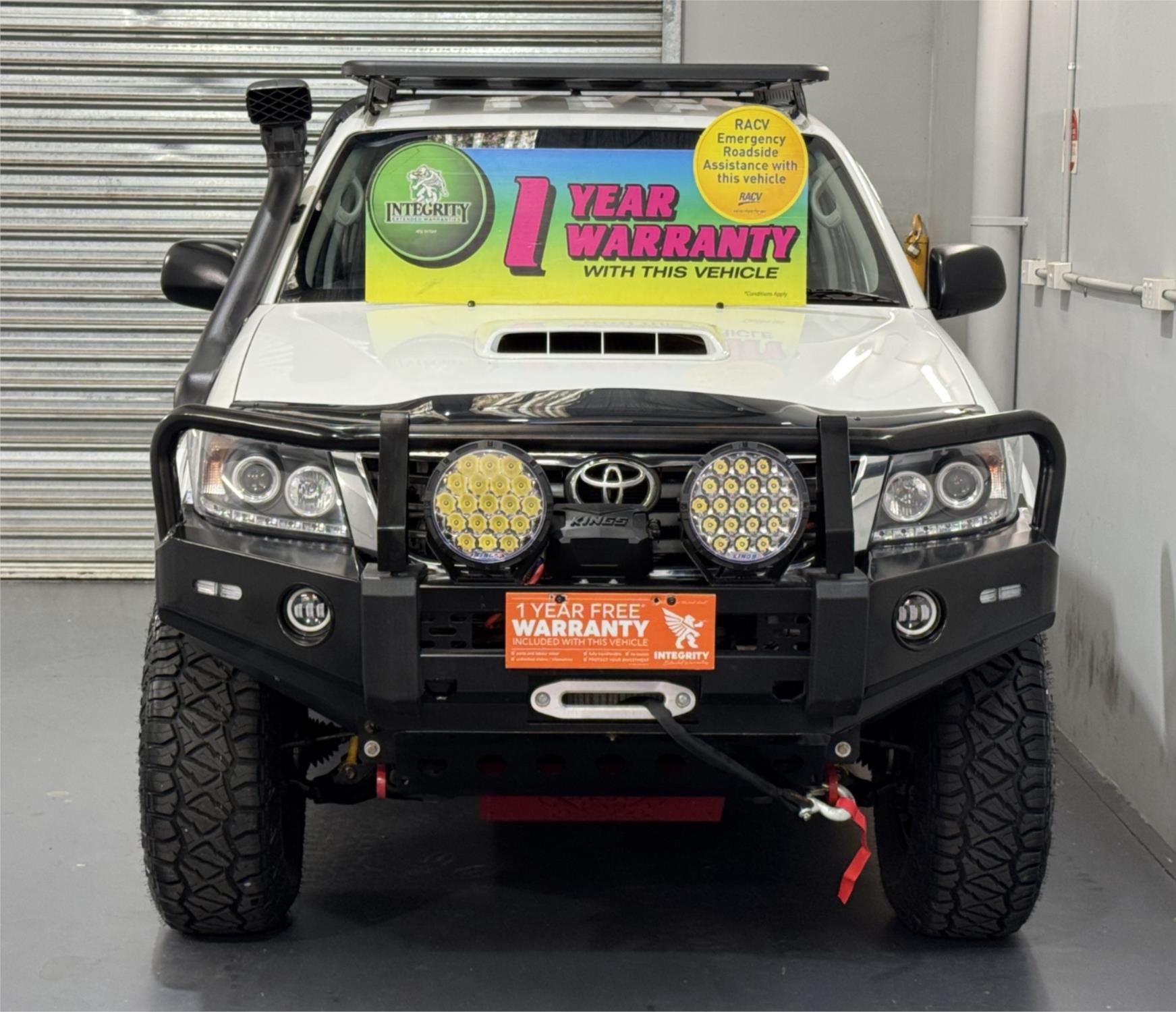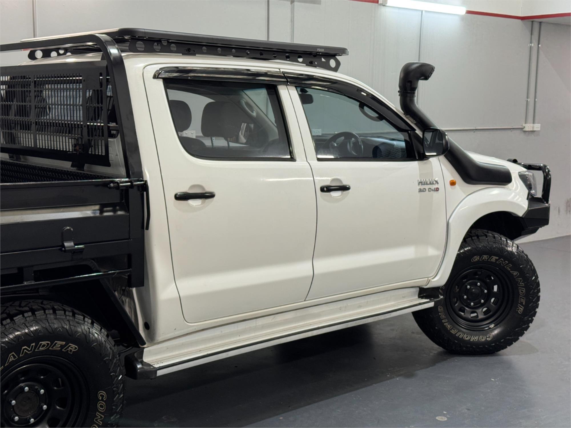 White 2012 Hilux SR Turbo Diesel 3.0DT 4X4 Automatic Cab Chassis Dual Cab Current RWC, Heavy Duty Steel Black Tray, Steel Bull Bar With Fog Lights, Kings Winch, Kings Spot Lights, Snorkel, 16" Sunraysia Wheels With Four Brand New Rugged / All Terrain Tyres, Lift Kit, Bash Plates, Open Roof Racks, Tow Bar, Original Rubber Floor Mats, AUX Input, USB Socket, Bluetooth, Bonnet Protector, Weather Shield, Airbags, Power Windows, ABS Brakes, Electric Mirrors, Multi-Function Steering Wheel, Central Locking - Remote Keyless, Clear Title and Immaculate Condition with Thousands Worth Of Gears. Great workhorse or family car kept in beautiful condition and beautifully presented. This is a very special loved vehicle that has been meticulously maintained.