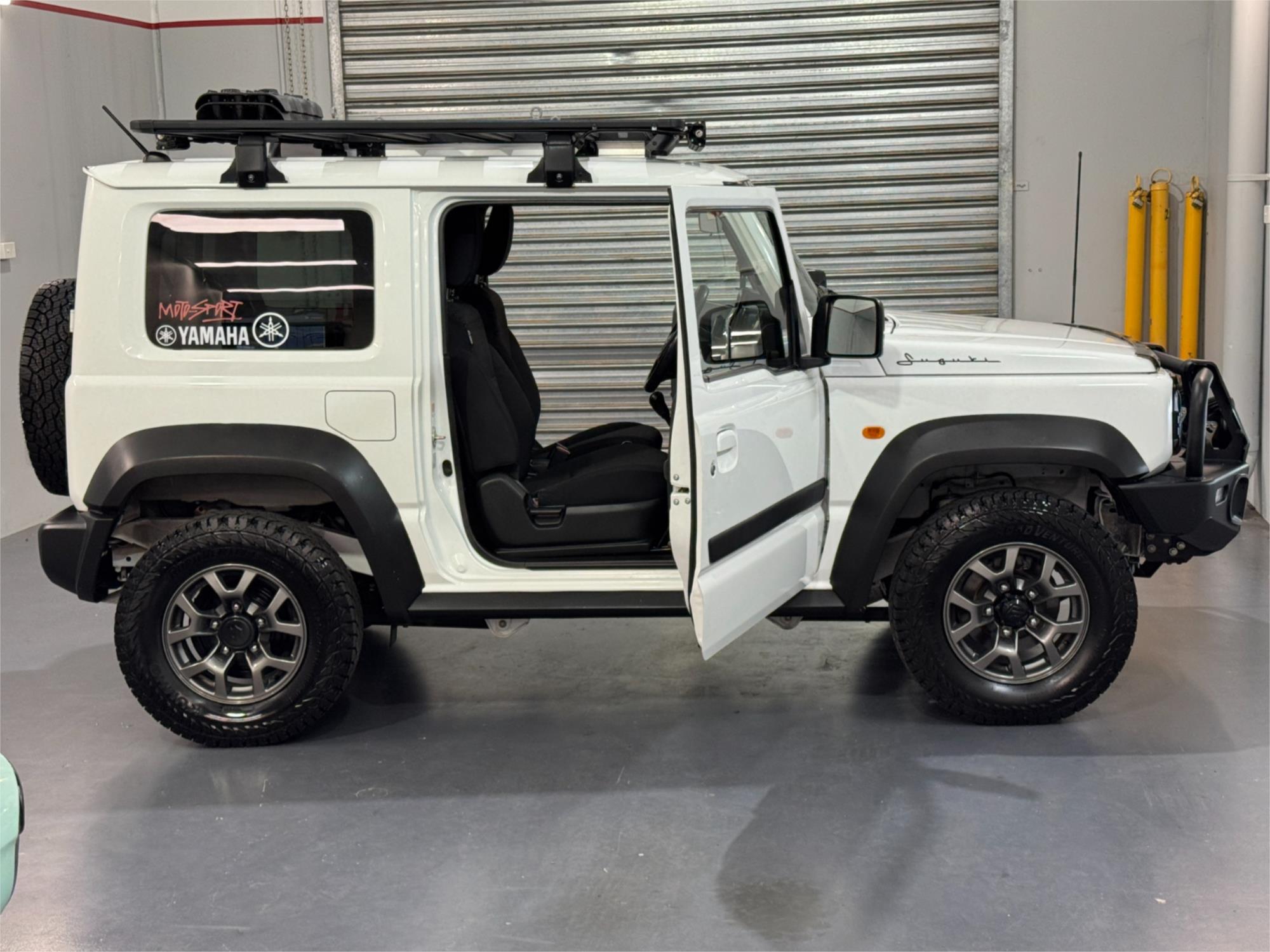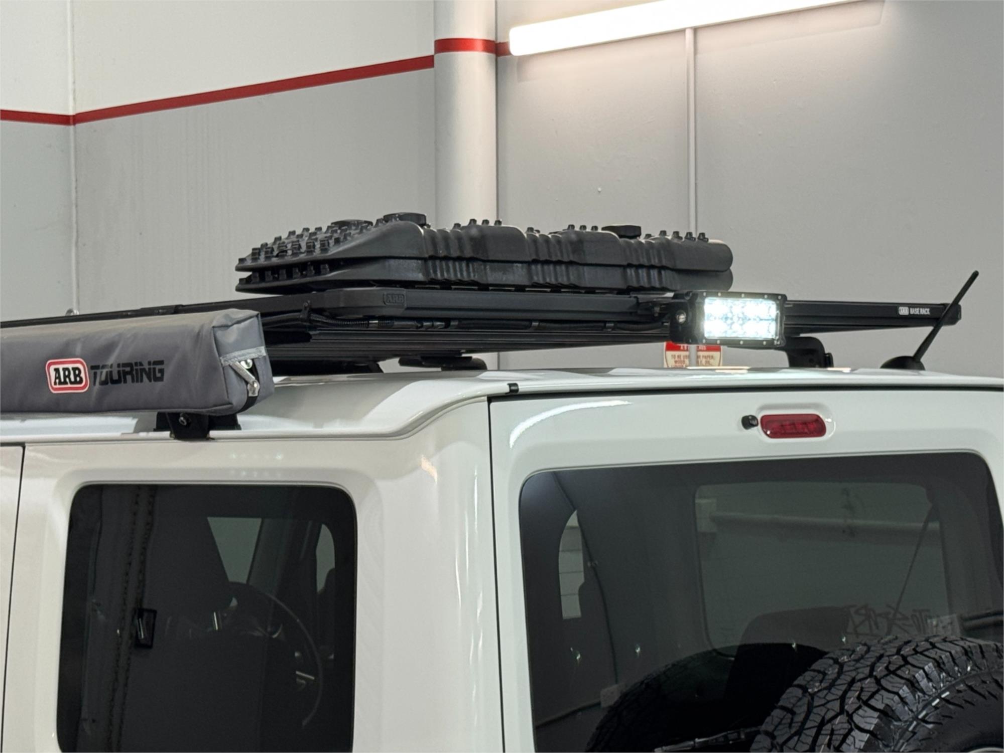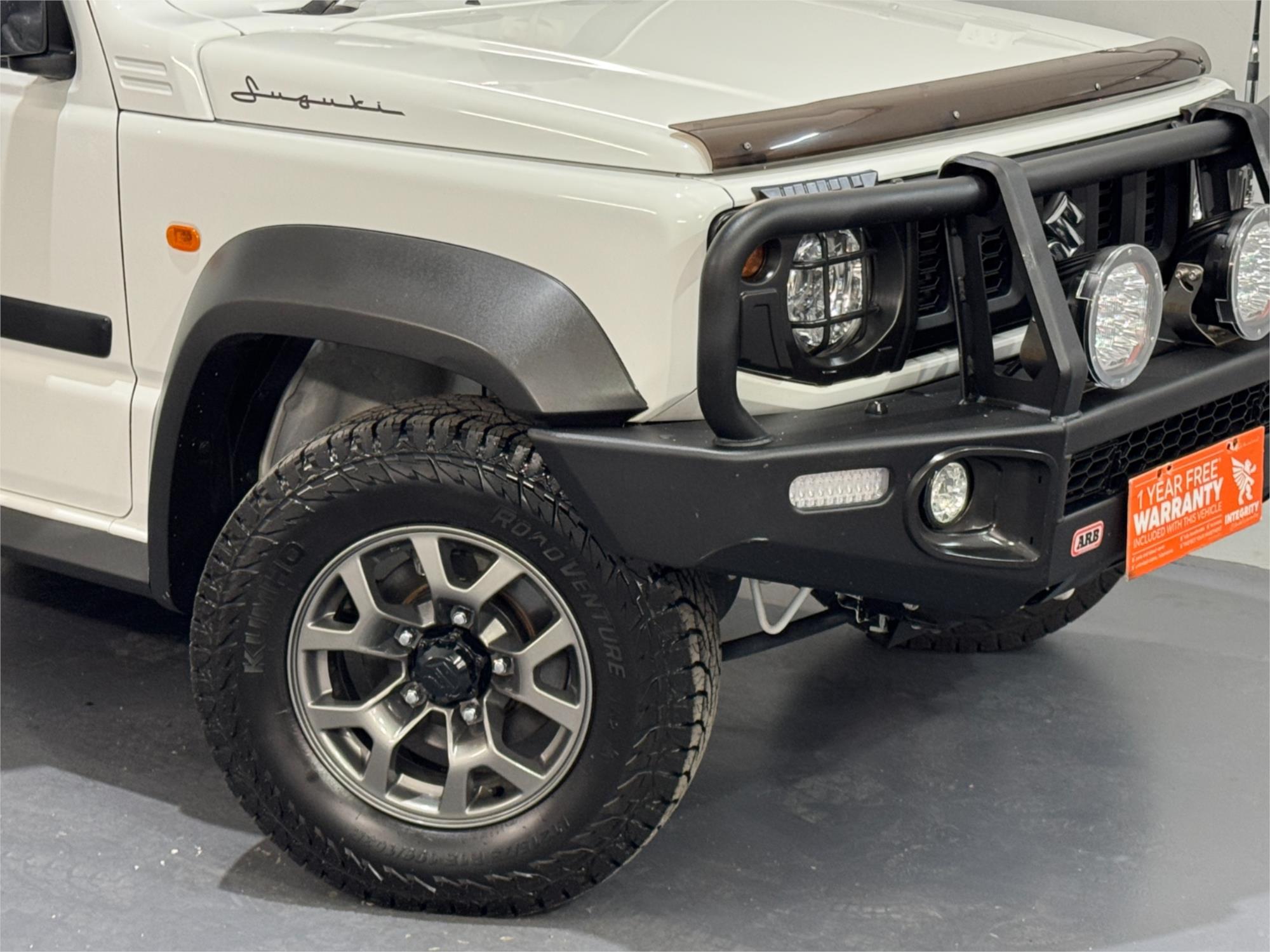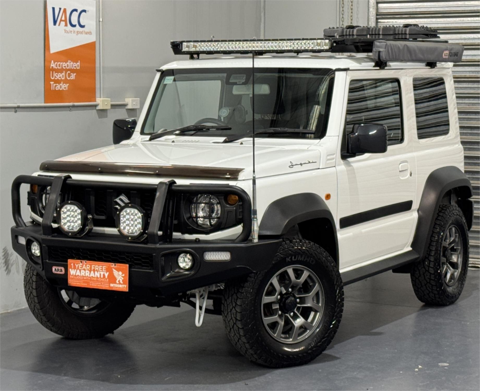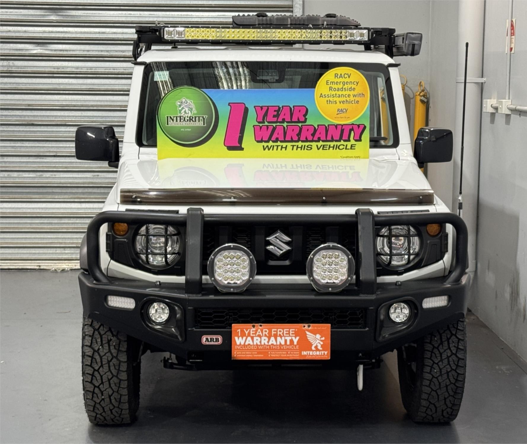 One Owner Immaculate Suzuki Jimny 2021 GXL Hardtop 3dr Man 5sp 4x4 1.5i With Good Service History Current RWC Included, ARB Bull Bar With Fog Lights, RoadVision LED Spotlights, ARB Aluminum Roof Racks With Front 40" SuperNova LED Light Bars & Rear SuperNova LED Lights Above Tail Gate, ARB Touring Side Awning, Kings Recovery Tracks, 15" Alloy Wheels With Near New Kumho Road Venture All Terrain Tyres, GME Uhf Radio, Daytime Running Lamps, Android Auto & Apple CarPlay, Lane Departure Warning, Forward Collision Warning, Bluetooth, USB Socket, Aux Input, 12 V Power Socket, Rubber Floor Mats, Cruise Control, ABS Brakes, Airbags, Power Windows, Bonnet Protector, Weather Shield, Central Locking - Remote Keyless, Air Conditioning, Clear Title and Immaculate Condition with Thousands Worth Of Gears. This is a very special loved vehicle that has been meticulously maintained. kept in beautiful condition and beautifully presented.